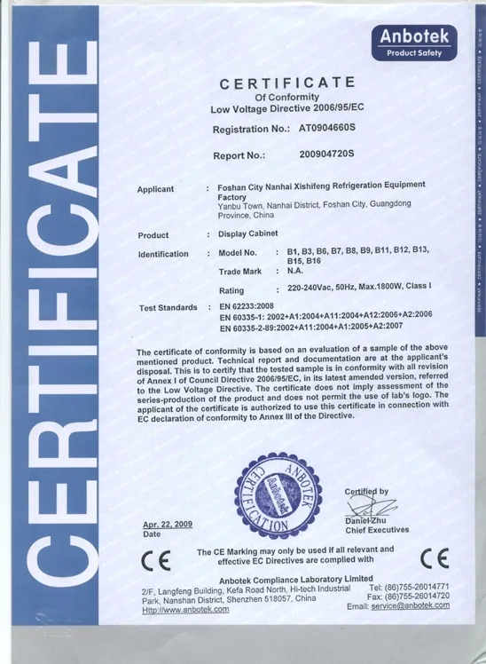 - the ice cream display case has been tested at +35° C in 70% relative humidity